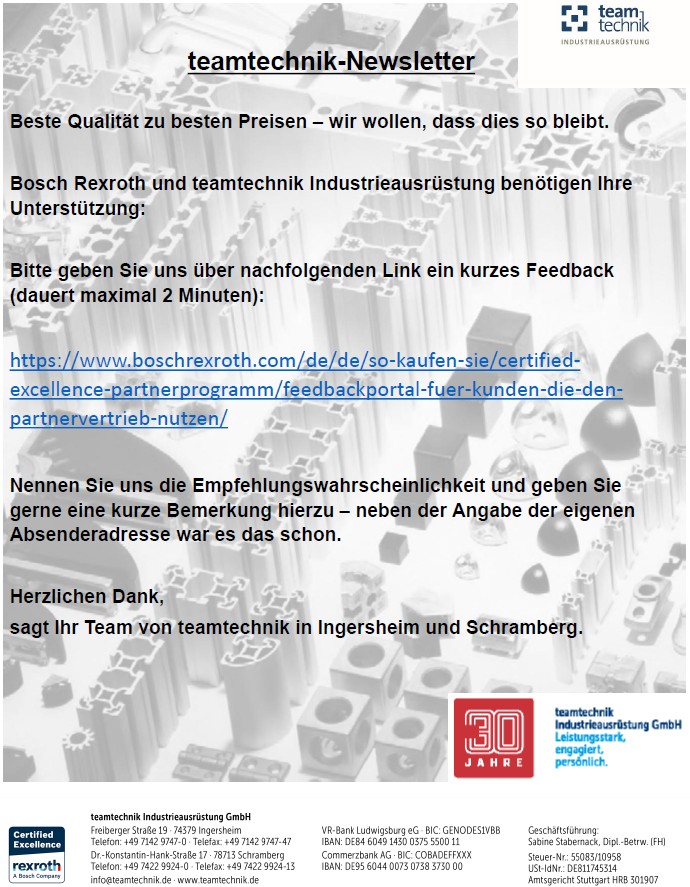 Aktion 30 Jahre teamtechnik Industrieausrüstung – Rabatte fürs Ehrenamt