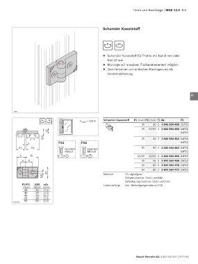 8 10 F max = 150 N Scharnier Kunststoff P1 (mm) P2 (mm) Nr. FS
