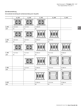 Schematische Darstellung der Zylinderanordnung nach Baugröße